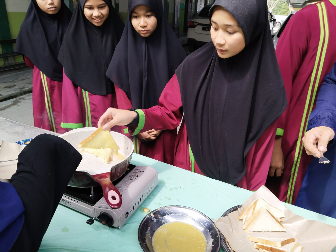 alhamdulillah, waktu pagi, murid di beri tayangan cara memasak nasi dan cara memasak roti telur.